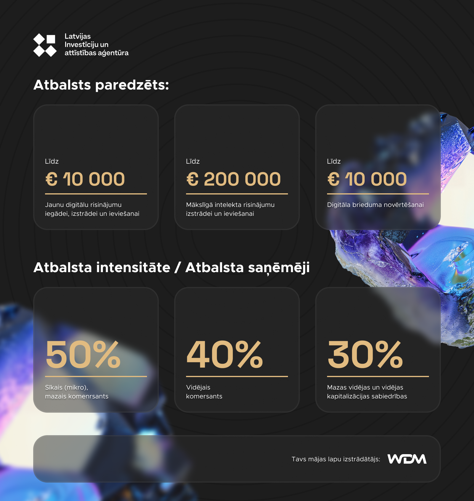 Interneta veikalu izstrāde (Pieejams LIAA Finansējums 50%) Interneta veikalu izstrāde tavam biznesam Tas, ka pēdējo gadu laikā e-komercija ir ieguvusi milzīgu popularitāti un tas, ka tā tikai augs un attīstīsies, ir neizbēgams fakts. Iespēja iegādāties preces un pakalpojumus internetā, ir neizmērojami atvieglojusi cilvēku ikdienu, ietaupot dārgo laika resursu uz veikalu apmeklējumiem. Kā jau ar visām jaunajām tendencēm, tās pamazām aizstāj vecās un, diemžēl, lielākā daļa, līdz šim praktizēto biznesa modeļu, vairs nebūs spējīgi izdzīvot mūsdienu jaunajā – digitālajā laikmetā. Tādēļ, ikvienam uzņēmuma īpašniekam, kurš vēlas saglabāt un uzlabot savas tirgus un konkurences pozīcijas, ir ļoti svarīgi saprast un atrast piemērotāko veidu, kā šo jauno tendenci izmantot savā labā un gūt maksimālu peļņu no tā. Mēs esam šeit, lai dotu tev nepieciešamos instrumentus, kas ļaus tev būt konkurētspējīgam mūsdienu e-komercijas vidē. Noderīga informācija izveidojot interneta veikalu: Kas jāzina pirms interneta veikala izstrādes? Interneta veikala izstrāde – 8 iemesli kāpēc klienti pamet interneta veikalu Ko mēs piedāvājam? Konsultēšana Ir ideja, bet nezini kā to pareizi īstenot un ar ko sākt? Satraukumam nav pamata! Esam izstrādājuši e-komercijas risinājumus dažādiem biznesa modeļiem un ar lielāko prieku dalīsimies savā pieredzē! Mūsu komanda sastāv no profesionāliem stratēģiem, projektu vadītājiem, speciālistiem, web dizaineriem un tehniķiem, kuri spēj atrast risinājumus pat vissarežģītākajām un trakākajām klientu idejām. Mēs ar prieku un entuziasmu sniegsim konsultācijas par visiem svarīgajiem soļiem un patiesi iedziļināsimies tavā idejā, lai sniegtu maksimālu rezultātu tavas e-komercijas idejas īstenošanā. UI/UX Dizains Ņemot vērā milzīgo e-komercijas popularitāti, milzu konkurence starp uzņēmumiem ir neizbēgama. Ja vēlies, lai tava uzņēmuma zīmols būtu konkurētspējīgs, vitāli svarīgi, lai tava saite apmeklētājiem, būtu maksimāli ērta un patīkama mijiedarbība ar tavu e-komercijas platformu. Skaists, acīm tīkams dizains un parocīgs, viegli saprotams, pārskatāms elementu izvietojums ir vieni no svarīgākajiem kritērijiem, lai klientiem, veikala apmeklējums, paliktu atmiņā, kā patīkama ciemošanās, kur atgriezties atkal un atkal. WD Market strādā augsti kvalificēti un talantīgi web dizaineri ar bagātu pieredzes bagāžu, kuri, ar lielāko prieku, palīdzēs taviem klientiem saņemt šādu pieredzi. Pielāgota funkcionalitāte E-komercijas platformas pamata funkcija ir pārdot produktu vai pakalpojumu un, lai šo funkciju varētu īstenot, viens no pirmajiem soļiem ir izvēlēties atbilstošu satura pārvaldības sistēmu, kas nodrošinās nepieciešamo funkcionalitāti tavam interneta veikalam. Mazam veikalam, ar 5 vienkāršiem produktiem, noteikti, nebūs nepieciešamas tādas pašas funkcijas, kā milzīgam veikalam ar tūkstošiem produktu, kas pieejami simtiem variācijās. Esam strādājuši gan ar maziem pašmāju uzņēmējiem, gan ar lieliem starptautiskiem tirgotājiem. Mēs palīdzēsim rast labāko risinājumu tieši tavām vajadzībām! Automatizācija E-komercija ir ne tikai atvieglojusi ikdienu pircējiem, bet arī pašiem komersantiem. Daudzus procesus, kas ir jāveic tirgojoties klātienē, e-komercija risina ar automatizācijas palīdzību. Preces izvēle, klienta informācija, piegādes adrese, paziņojums par preces pieejamību noliktavā, maksājumi un daudz citi procesi. Šo procesu veiksmīgai norisei, vairs nav nepieciešams, lai kāds darbinieks stāvētu klāt un visu pieskatītu. E-komercijā, lielāko daļu procesus ir iespējams automatizēt. Vai tā būtu standartizēta automatizācija, kas pieejama visos e-komercijas gatavajos risinājumos, vai arī individuāla ideja, kas jāpielāgo tieši tev, nāc pie mums un kopā atradīsim piemērotāko risinājumu, lai maksimāli efektīvi automatizētu tava biznesa procesus. API jeb Lietojumprogrammu saskarne Ir beigusies prece, bet lai par to uzzinātu tavs piegādātājs un, lai pārbaudītu vai viņam tā vēl noliktavā ir pieejama, tev ir speciāli jāzvana un jānokārto viss caur telefonu? Līdzīgi, kā iekšējos biznesa procesus, arī arējos procesus var automatizēt un padarīt maksimāli vienkāršus. Ja noliktavai ir sava iekšējā sistēma, kāpēc gan ar to nesavienoties un nenoņemt šo visu procesu no tavām rokām? Šis ir tikai viens piemērs, kā ar API var atvieglot biznesa ārējos procesus. Ienāca prātā kāda ideja, kā atvieglot savu ikdienu šajā sakarā? Nāc pie mums, kopīgi izskatīsim visus iespējamos risinājumus un efektīvākos ieviesīsim, lai ietaupītu tavu laiku un atvieglotu tava uzņēmuma procesus. Analītika Lai izsekotu savas platformas veikumam, ir ļoti svarīgi veikt dažādas analītikas un ievākt statistikas. Kādas reklāmas kampaņas ir bijušas veiksmīgas? Vai ir sasniegta tēmētā mērķauditorija? No kādām avotiem nāk klienti? Kurā brīdī klients pamet platformu? Šī visa ir ļoti svarīga informācija, kas ir nepieciešama, lai saprastu kādus uzlabojums ir jāveic, lai optimizētu savu e-komercijas platformu un biznesa praksi vai mārketinga stratēģiju. Ir pieejami daudz dažādi rīki šādu analītiku veikšanai. Mēs tev palīdzēsim izvēlēties un integrēsim piemērotākos rīkus, kas atspoguļos tieši tev nepieciešamo informāciju. SEO Kā zināms, e-komercijas platformas pamata funkcija ir pārdot, bet tas būs neiespējami, ja nebūs klienti, kam pārdot. SEO, jeb meklētājprogrammu optimizācija, ir process, kurā tiek pastiprināta veikala klātbūtne interneta meklētājprogrammās, kā Google, Yahoo, Bing un citas. Tā mērķis ir veidot neapmaksātu datu plūsmu no dabiskajiem meklēšanas rezultātiem. Jo labāks ir SEO, jo augstākas pozīcijas meklētājprogra